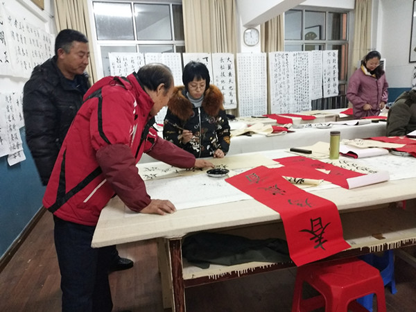 新洋書法傳承班學(xué)員寫春聯(lián)送祝福