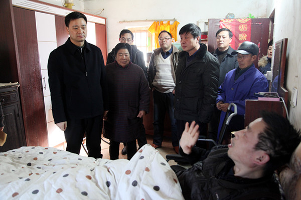 在居民新區(qū)退休職工賈則元家,姜建友來到賈則元的床前,將集團(tuán)公司黨委的溫暖送到了他的心坎里,賈則元因病臥床不能說話,當(dāng)看到集團(tuán)公司和農(nóng)場領(lǐng)導(dǎo)來到家中看望他時(shí),激動(dòng)的熱淚盈眶,在旁的家人再三感謝集團(tuán)公司領(lǐng)導(dǎo)對(duì)他們的關(guān)心。姜建友在了解了賈則元的病情后,叮囑他的家人一定要照顧好老人的生活起居,當(dāng)?shù)弥先说貌∫荒甓嗯P床不起都是子女在照顧時(shí),姜建友欣慰的說,有這樣的子女也是老人的福氣,希望他們繼續(xù)照顧好老人,讓老人老有所依,病有所托。在困難職工李兵家,姜建友來到床前,握著李兵的手詢問了他目前的病情和治療情況,當(dāng)?shù)弥翘悄虿【C合并發(fā)癥時(shí),叮囑他要積極做好治療,特別是要去大醫(yī)院做檢查,控制好血糖,要樹立戰(zhàn)勝疾病的信心。所到之處,感謝聲不絕于耳,在這寒冷的冬日,困難職工的家中被一股股暖流包圍。(錢厚紅)