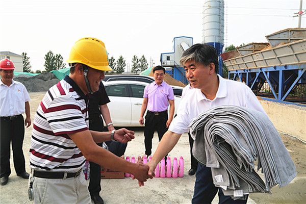 會后,佟曉廷主席一行在農場公司領導的陪同下,冒著高溫來到連云港振港有限公司院內,慰問了正在更換變壓器的供電中心員工,為他們送去了遮陽帽、毛巾、香皂、洗衣液、清涼油等防暑用品,也將集團公司工會和農場公司黨委的關愛送到了他們心坎上。