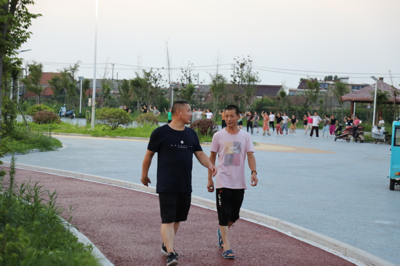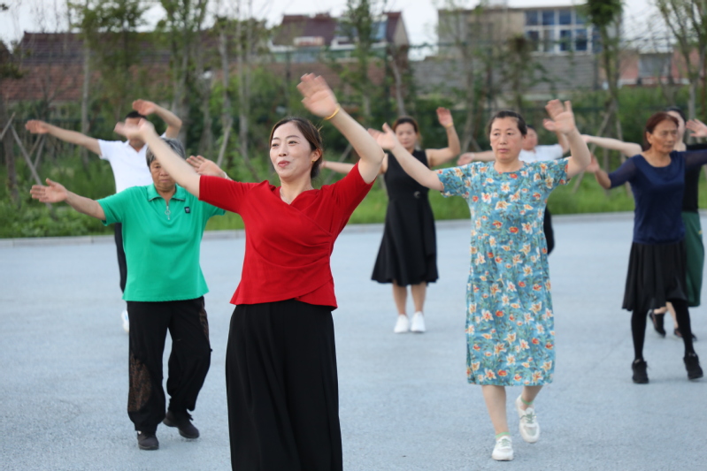 廣場舞臺上的愜意。每天傍晚6:30分,文化廣場都會傳出一陣陣歡快的音樂聲,伴隨著音樂的節奏,近百人舞動的身姿吸引著不少人跟著跳動比劃。自文化廣場建成后,農場公司特地在百姓大舞臺廣場安裝了接電裝置,為職工居民跳廣場舞提供方便,舞臺南側的高桿燈光明亮,舞者們的臉上洋溢著幸福的微笑。廣場建成后,退休職工黃淑英主動當起了廣場舞的老師,每天領著大家一起跳操跳舞健身,一支百余人的廣場舞隊每天活躍在文化廣場,帶動了更多的職工居民加入到跳舞健身的行列。黃淑英說:每晚跳舞健身后的大汗淋漓舒服極了,不僅使全身都得到了活動和放松,增強了體質,還增進了大家之間的感情。