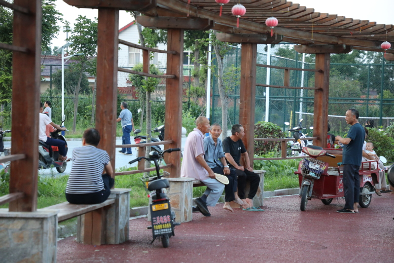 廊架下的“家常理短”。棗紅的廊架,既有著中國傳統因素,又有著古典的雅致,廊架下的長板凳不僅成為鍛煉后人們休息的好地方,也成為大家聊在的好去處。伴著微涼的晚風,三五個人坐在廊架下,嘮嘮嗑,拉拉家常,說著今年的水稻長的怎么樣?你家這次撒了多少肥?我家雇了多少人在田里拔草等等,一天忙碌后的疲勞在這里得到緩解。居民新區的明大媽每天都會到廊架下坐上一個多小時,退休在家的她,每天在廊架下聽著大家帶來的“新聞”,不僅充實了晚年生活,也打發了退休后的充足時間,廊架下的“家常理短”已逐漸成為三河人日常生活的一種樂趣。