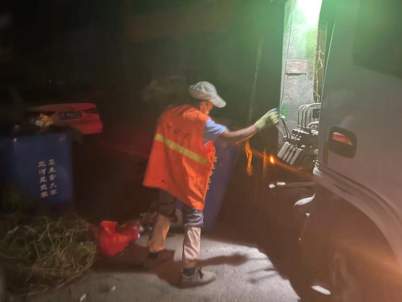 凌晨三點的三河,月色溫柔,滿天繁星。垃圾清運車司機戴玉剛頭頂星光開始了一天的工作。