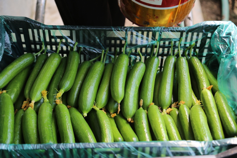 生產(chǎn)中,技術(shù)人員根據(jù)棚溫、濕度等變化規(guī)律合理進(jìn)行調(diào)節(jié),為黃瓜生長提供適宜的環(huán)境,提高黃瓜的品質(zhì),經(jīng)過科學(xué)管理,目前已經(jīng)成功上市銷售。由于目前市場上水果黃瓜供應(yīng)較少,加之崗埠水果黃瓜品質(zhì)優(yōu)良,收到了保真超市和市區(qū)一些水果連鎖店的熱捧,訂單紛至沓來。“現(xiàn)在水果黃瓜剛上市,產(chǎn)量每天僅4、5百斤,根本不夠搶的,今天都摘了第二遍了?!贝奘科揭贿吤β抵贿呎f。
