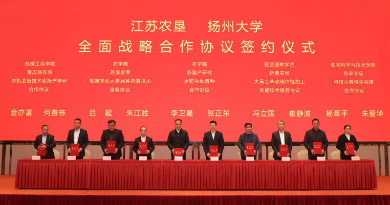 集團公司總經濟師、相關部門負責人,相關農場、蘇墾農發等單位負責人,揚州大學相關學院及部門負責人、專家教授等參加簽約儀式。