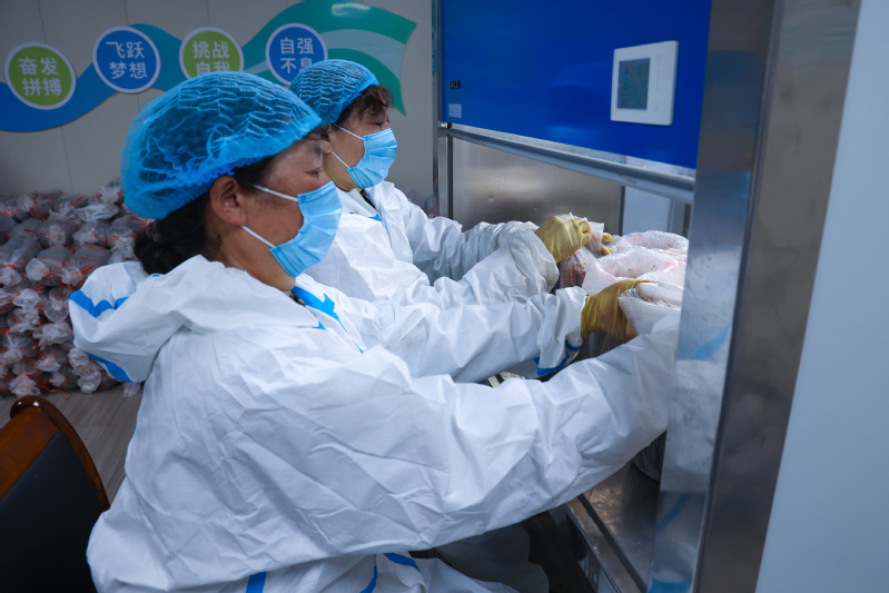 近日,在云臺農(nóng)場興墾科技工作室內(nèi),工作人員正在進行靈芝接種工作。整個接種過程在嚴格的無菌環(huán)境下進行,工作人員將靈芝菌種小心地放入椴木孔洞中,為靈芝生長創(chuàng)造良好的條件。據(jù)悉,本次接種工作將處理15000個菌棒,菌絲發(fā)滿后將進行定植工作。