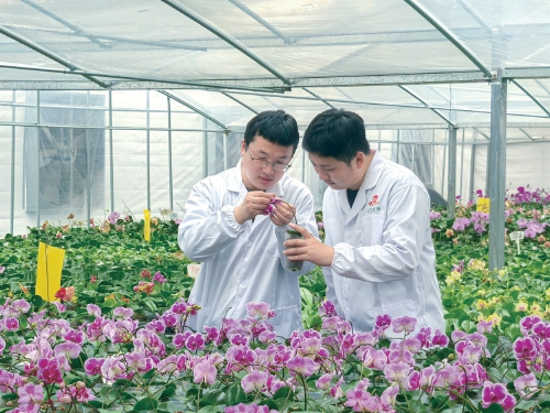 圖為農(nóng)場(chǎng)技術(shù)人員正在查看蝴蝶蘭種苗。 受訪(fǎng)者供圖
