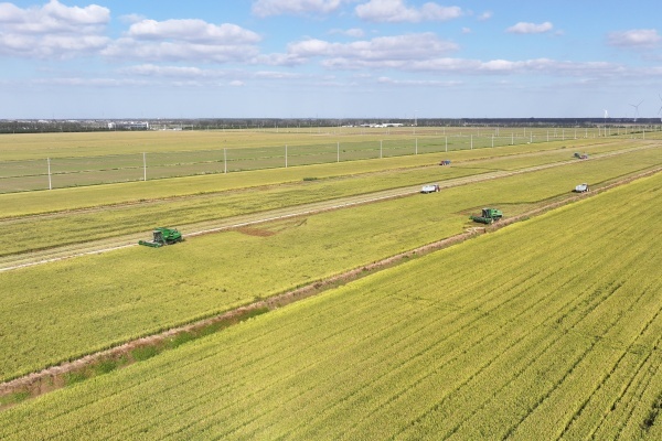 “地里看不到人,但是一切都在掌握。”蘇墾農(nóng)發(fā)臨海分公司副總經(jīng)理馮衛(wèi)東沿著田間小路巡視稻田,說起今年的種植、收獲情況了如指掌。他的種田秘籍就是稻田里的攝像頭、空中的無人機(jī)。