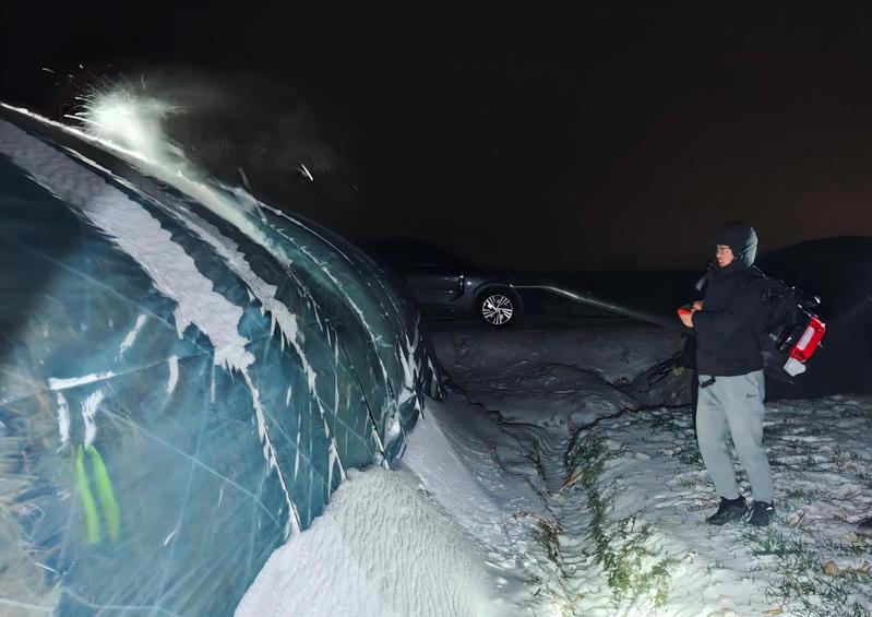 淮海農(nóng)場則構(gòu)建起“生產(chǎn)防護(hù)+民生保障”的全方位防御體系,第一時間傳達(dá)學(xué)習(xí)省農(nóng)業(yè)農(nóng)村廳緊急通知精神,牢固樹立“人民至上、生命至上”理念。在生產(chǎn)端,蘇墾農(nóng)發(fā)淮海分公司重點強(qiáng)化麥苗分類管護(hù),對晚播弱苗和旺長苗采取鎮(zhèn)壓保墑、合理施肥等措施。農(nóng)場則在羊肚菌基地加固大棚并做好積雪清理準(zhǔn)備,畜禽養(yǎng)殖區(qū)全面排查水電線路、配備備用發(fā)電機(jī),通過優(yōu)化飼料營養(yǎng)保障畜禽安全越冬。在民生端,同步推進(jìn)基礎(chǔ)設(shè)施防凍,對綠化樹木噴施防凍液、對裸露供水管網(wǎng)進(jìn)行保溫包裹,特別關(guān)注孤寡老人、困難職工等群體,安排專人上門檢查取暖設(shè)備、儲備生活用水。目前,農(nóng)場已落實24小時值班制度,成立應(yīng)急小隊并儲備充足物資,確保一旦發(fā)生險情能夠快速處置。