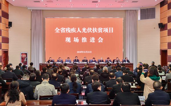 12月21日,全省殘疾人光伏扶貧項目推進會在盱眙縣召開。省委常委、組織部部長郭文奇出席會議并講話。省委副秘書長尹衛東主持會議。省委組織部副部長周為號,淮安市委書記姚曉東,集團公司黨委書記、董事長魏
