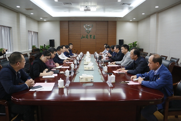 海南農(nóng)墾到集團(tuán)公司考察交流    10月27日下午,海南省農(nóng)墾投資控股集團(tuán)有限公司總經(jīng)理王業(yè)僑一行到集團(tuán)公司考察交流。集團(tuán)公司黨委書記、董事長魏紅軍會(huì)見,總經(jīng)理胡兆輝出席座談并全