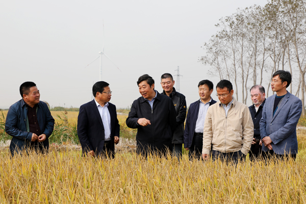 近日,省農(nóng)墾集團(tuán)公司總經(jīng)理、蘇墾農(nóng)發(fā)股份有限公司董事長胡兆輝帶領(lǐng)相關(guān)部門負(fù)責(zé)人來東辛檢查、指導(dǎo)工作。在東辛農(nóng)場有限公司黨委書記、場長韓中書、蘇墾農(nóng)