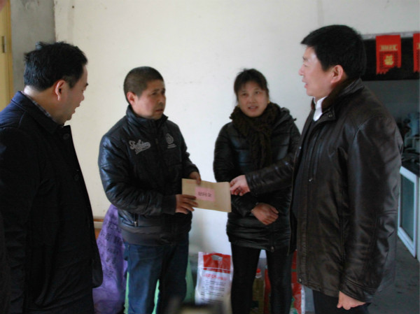 2月6日,積雪未消,集團公司黨委副書記姚準明一行來到?港農場慰問困難家庭,向他們送上集團公司黨委的親切關懷和新年問候。農場黨委書記、董事長、總經理王世伯,副書記胡廣斌,副總經理張德華,紀委
