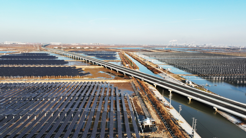 圖為江蘇農(nóng)墾東辛農(nóng)場實施的2580畝漁光一體集中式光伏發(fā)電項目,年發(fā)電量約1.48億千瓦時。