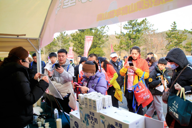 元旦期間,蘇墾乳業(yè)以“營養(yǎng)陪伴,活力開年”為主題,在連云港展開了一場線上線下聯(lián)動的品牌推廣活動。圖為蘇墾乳業(yè)在花果山新年登山賽現(xiàn)場設(shè)立品牌推廣補給站。