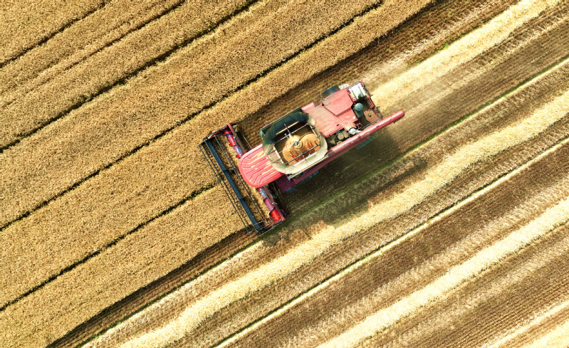 風吹麥浪,滿地金黃。蘇墾農發東壩頭分公司搶抓晴好天氣加緊搶收,數臺收割機馬力全開在田間來回穿梭,金黃的麥浪在轟鳴聲中起伏。