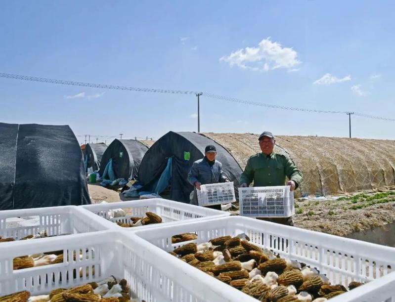 近日,淮海農(nóng)場首茬菌菇正式上市,采收期將持續(xù)至4月底。圖為工作人員正在小心翼翼地搬運杠杠采摘下來的羊肚菌。