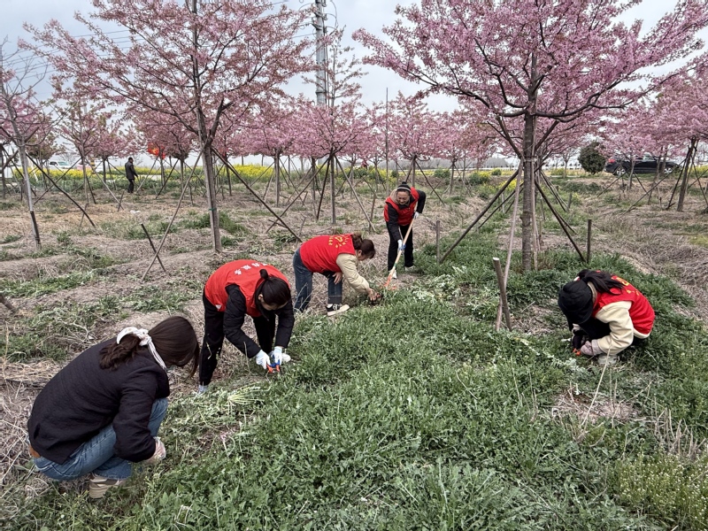 3月28日,白馬湖農(nóng)場組織開展巾幗護(hù)林園志愿活動,穿著紅色馬甲巾幗志愿者們對各種雜草進(jìn)行全面清理,忙碌身影與盛開的櫻花相互交織成一道亮麗的風(fēng)景線。