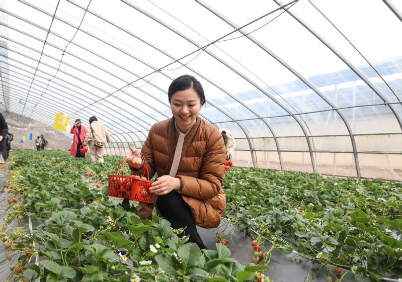 走進(jìn)云臺農(nóng)場云水灣濕地公園草莓大棚,沁人心脾的果香撲面而來。不少游客前來采摘,三三兩兩的游客手提小籃子穿梭在地壟間精挑細(xì)選,將一顆顆寶石般的草莓“收入囊中”,動手的快樂、品嘗的喜悅、打趣的笑聲溢滿大棚。大家盡情享受著“莓”好時光,體驗和感受采摘的樂趣,品嘗草莓的鮮甜。