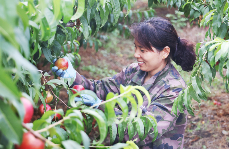 6月16日,三河農場工作人員在桃園中采摘鮮桃。近年來,三河農場通過調整種植結構,加強多品種林果試驗示范種植,因地制宜發展特色水果產業,著力探索打造“農業+旅游”的發展模式。