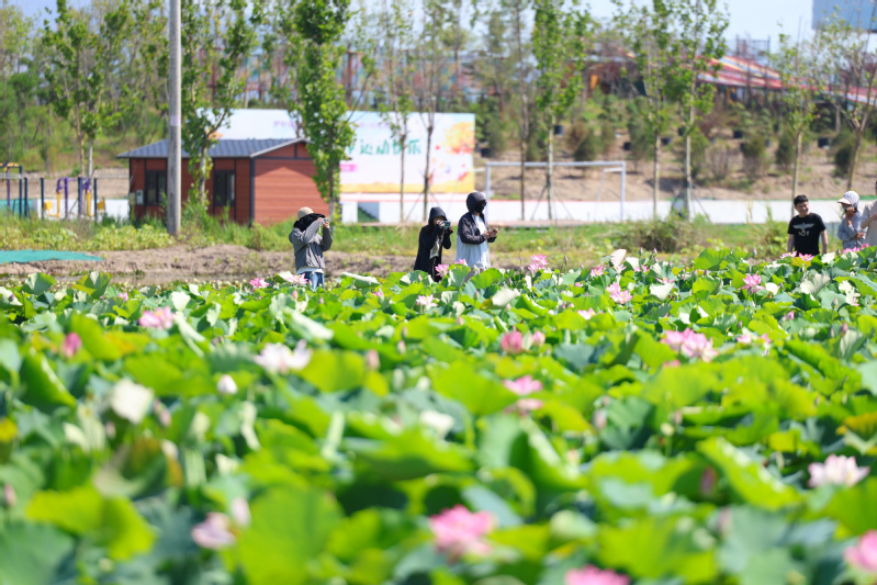 荷開滿塘,浮香繞岸,綻放出云水灣濕地公園最好的風景。走進云臺農場云水灣濕地公園水生花卉基地,滿塘的荷花競相綻放,微風輕拂,荷花荷葉隨風起舞,空氣中彌漫著淡淡的荷香,荷塘邊游人紛紛拍照打卡。孩童們結伴拿著網兜在睡蓮池邊捕捉著小龍蝦,為夏日的云水灣增添一抹野趣。