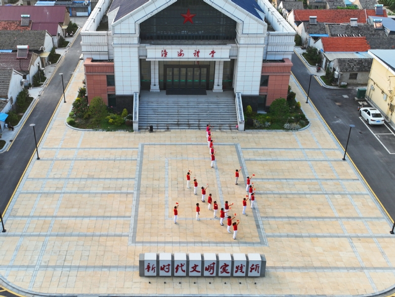 6月30日傍晚,在淮海農場禮堂前,農場老年舞蹈隊通過編排節目,慶賀中國共產黨成立103周年。