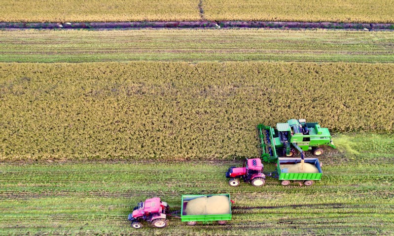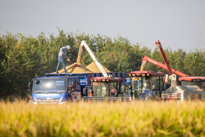 又逢一年水稻收割季,蘇墾農發淮海分公司沃野遍地“糧”辰美景。自10月21日大面積收割水稻以來,為確保在11月1日前將5.7萬畝水稻全部收割完成,該分公司投入了60多臺各類收割機突擊搶收,確保糧食顆粒歸倉。圖為望著滿倉的糧食農戶笑逐顏開。