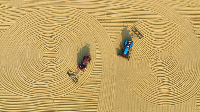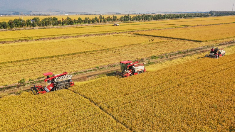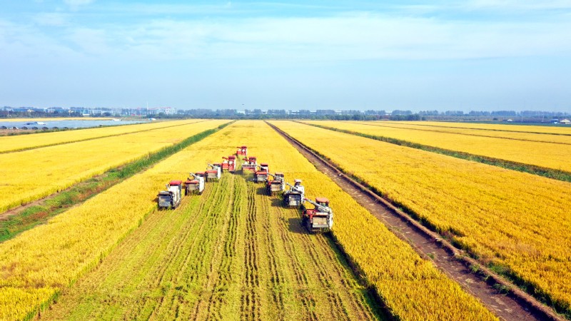 金秋十月,豐收季節。高空俯瞰江蘇省寶應湖農場,田間地頭,收割機來回穿梭,曬糧場,稻谷飄香,處處呈現如畫般的豐收美景。水稻收割完之后,旋耕機、播種機隨即“登場”,將一粒粒麥種播撒進田間,為來年豐收打下基礎。