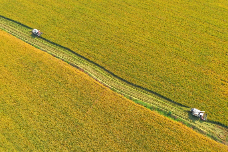 秋風拂過,稻菽飄香。眼下,正值水稻收割季節,云臺大地一片金黃。10月22日,蘇墾農發云臺分公司6000余畝水稻開鐮收割,在田間奏響“豐收曲”。機械轟鳴,沉甸甸的稻穗被攬入“懷中”,收割、脫粒、裝車,飽滿的谷粒傾瀉而下,被裝進運糧車里,工作人員美滋滋地看著田間的稻谷被收割殆盡,空氣中彌漫著稻谷的醇香。“今年我們的水稻長勢好、產量高,和我們以‘繡花功夫’狠抓精細化管理是分不開的。”云臺農場公司黨委副書記、蘇墾農發云臺分公司總經理宋光鋒在收割現場會滿意地說道。鄉村振興的核心是產業興旺,現代農業是云臺產業興旺的中堅力量。近年來,蘇墾農發云臺分公司堅持標準化生產方式,將技術、人才、信息等資源要素“引”向農業、“流”向企業,充分發揮國有農業企業帶頭作用,為農業產業發展注入新的活力。據了解,今年“三秋”,云臺將投入小型收割機20臺用于水稻收割,并投入播種機13臺,預計本月28日全部收割完畢,稻茬小麥將于31日播種結束。下一步,云臺將扎實做好秋收秋種秋管工作,牢牢守住“糧袋子”,為推進鄉村振興和糧食安全貢獻云臺力量。