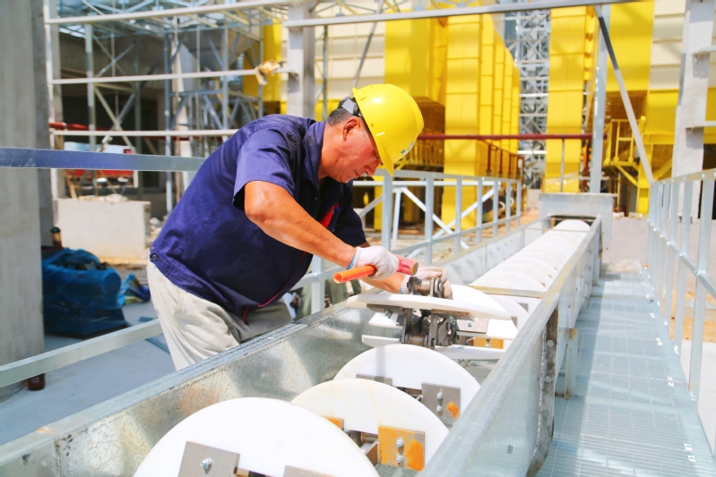 烈日炎炎,崗埠農(nóng)場(chǎng)一線建筑工人在1200噸糧食烘干線建設(shè)現(xiàn)場(chǎng)頂著高溫進(jìn)行焊接、組裝等作業(yè),堅(jiān)守崗位,全力保障項(xiàng)目如期完工。